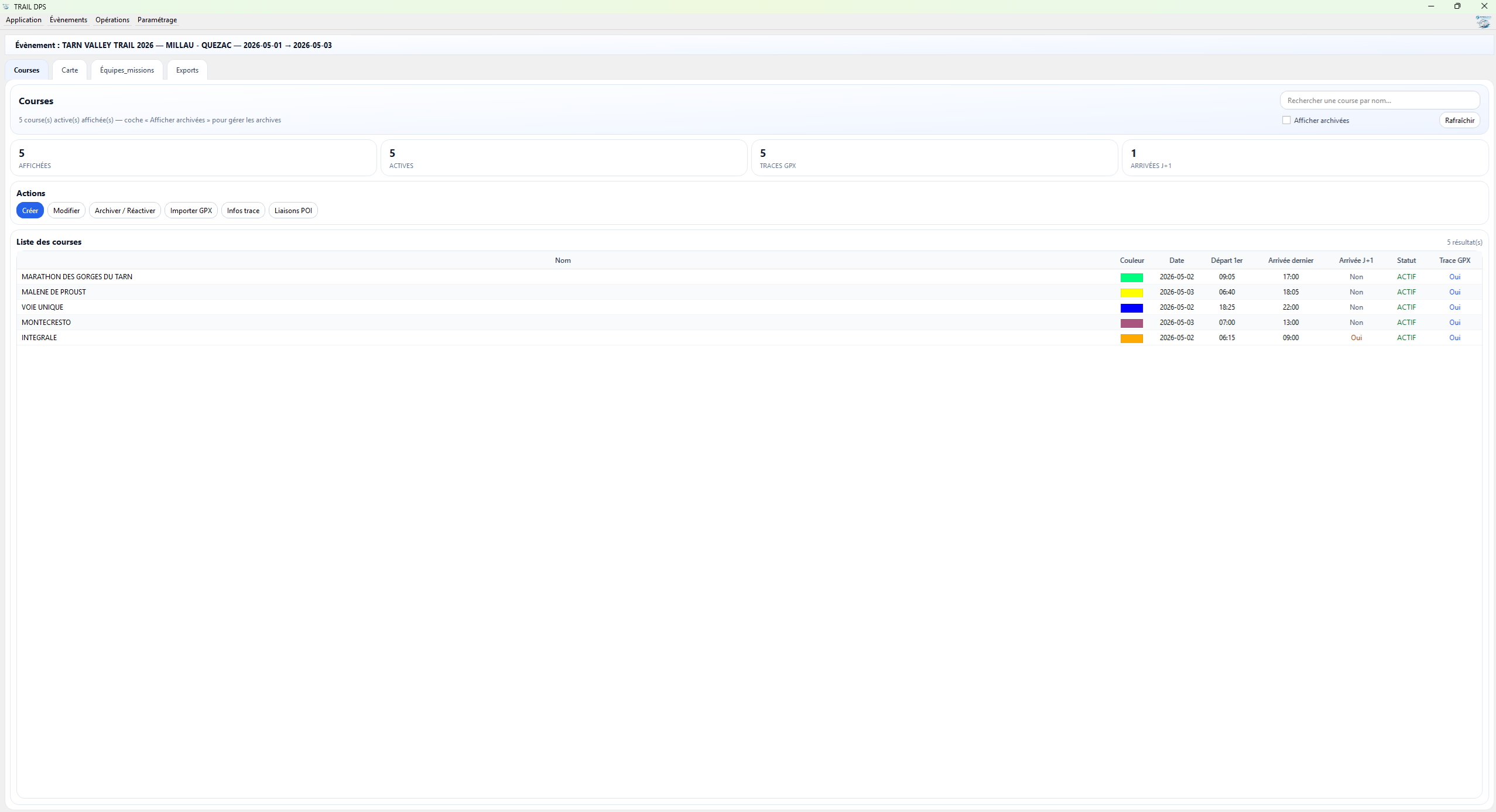 Création des courses & import GPX