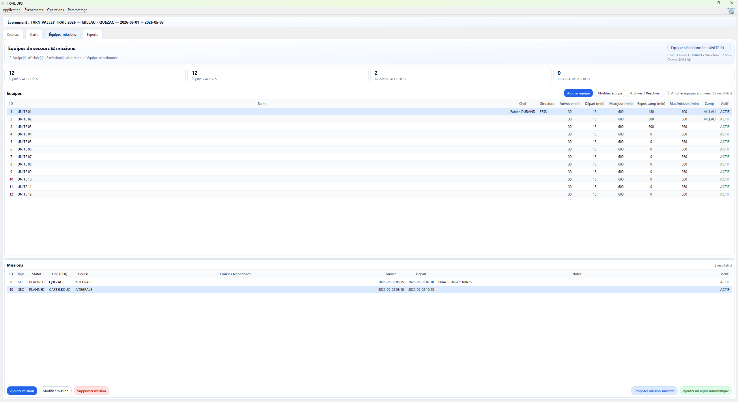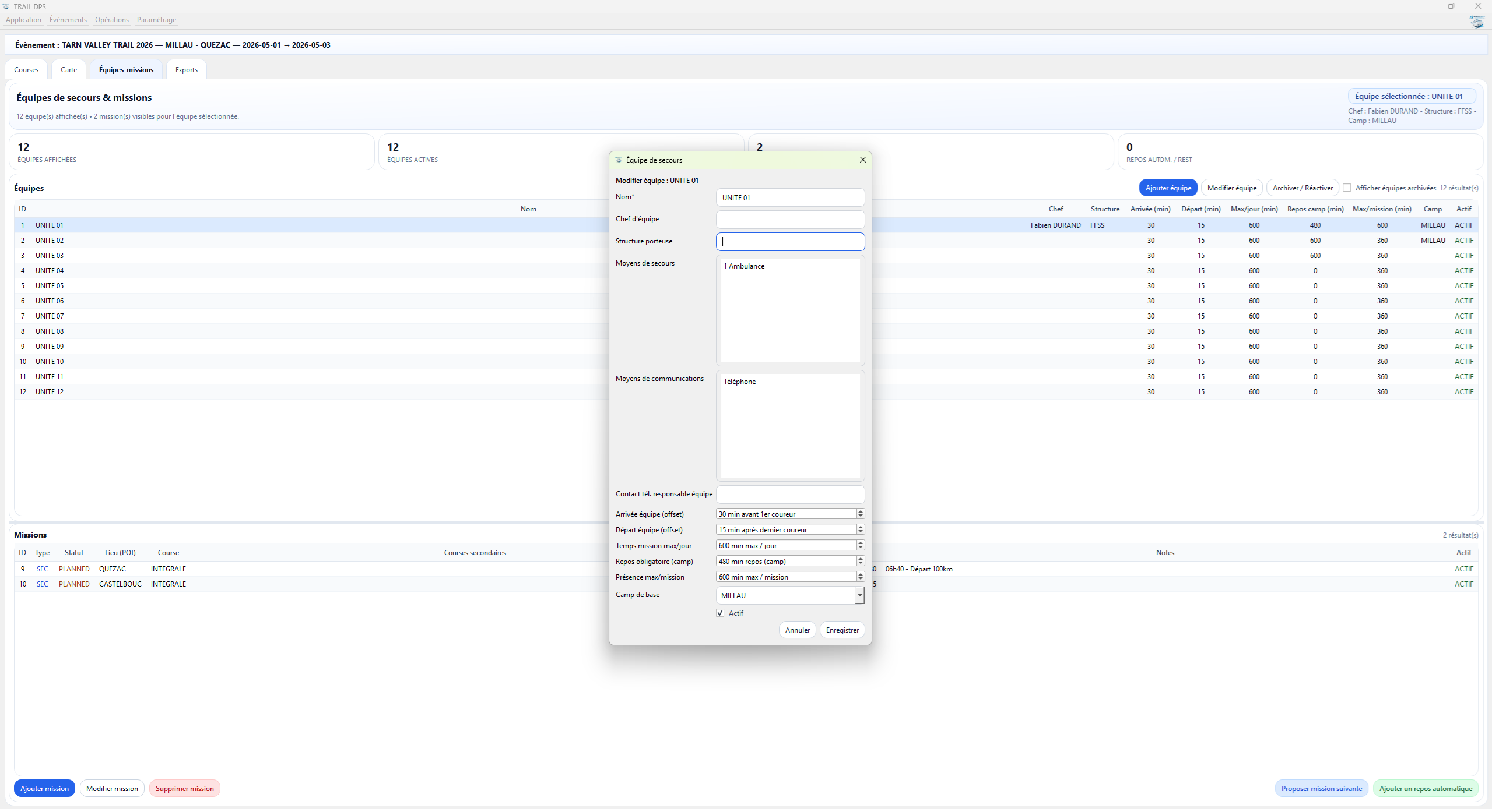 TRAIL DPS : logiciel pour organiser un poste de secours et planifier un DPS pour trail, VTT et événements outdoor