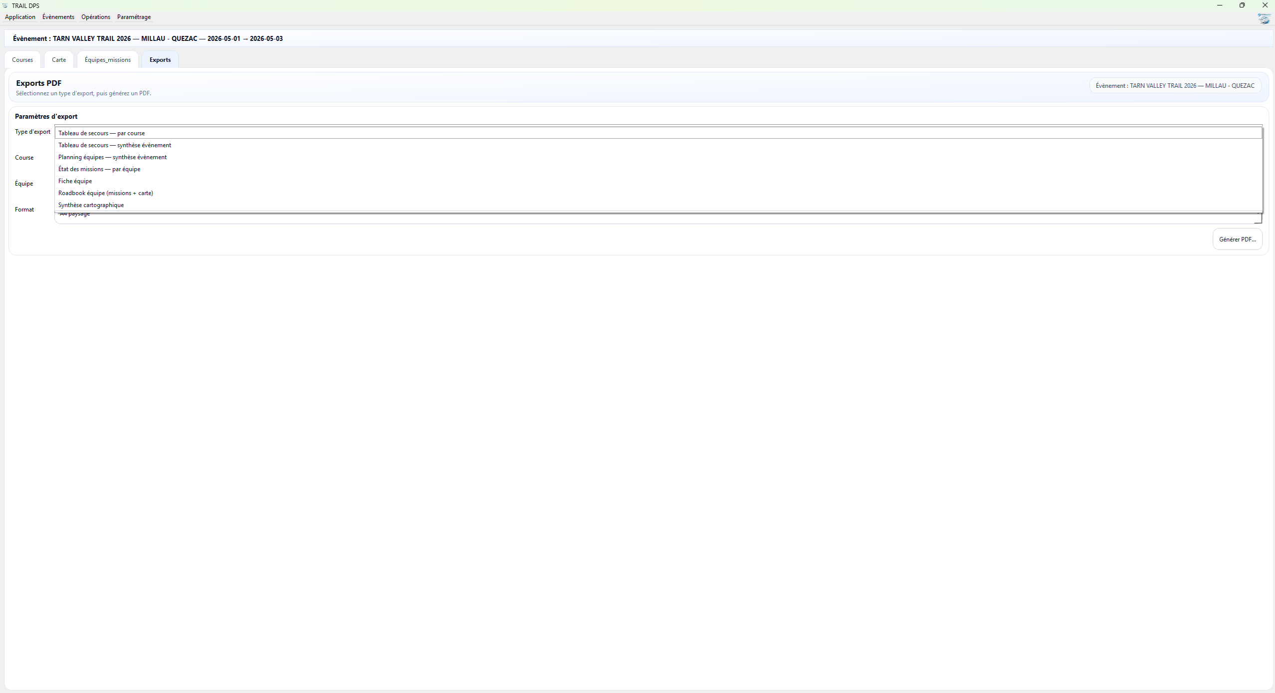 Concrètement, le besoin d’un outil comme TRAIL DPS apparaît souvent après cette étape de dimensionnement : une fois le dispositif estimé (postes, équipes, moyens), il faut le planifier, le documenter et le piloter efficacement — avec des exports PDF propres et une traçabilité claire.