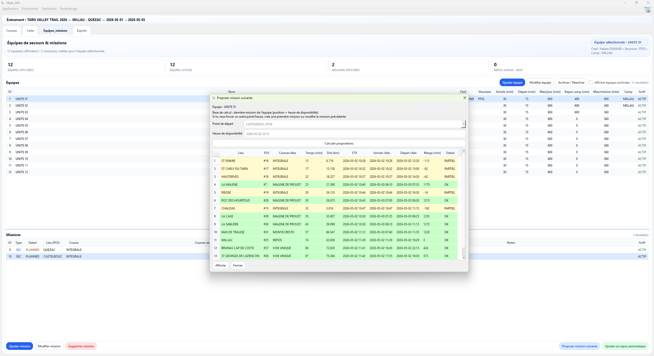 Planification équipes & missions
